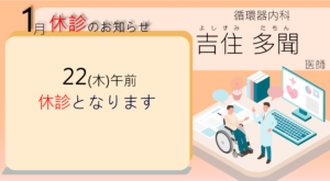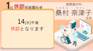 12月、1月の診療変更は下記のようになっておりますのでご確認ください。