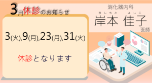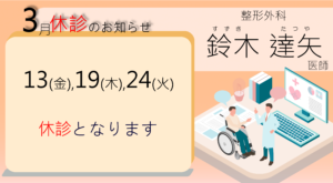 3月の診療変更は下記のようになっておりますのでご確認ください。