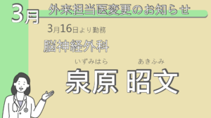 2026年3月16日より、下記の通り外来担当医が変更となりますのでお知らせいたします。